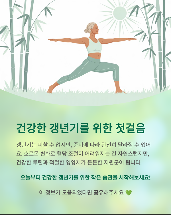 갱년기는 피할 수 없는 인생의 변곡점이지만, 우리가 어떻게 준비하느냐에 따라 완전히 달라질 수 있어요. 호르몬 변화로 예전보다 혈당 조절이 어려워지는 건 자연스러운 현상이지만, 이럴 때일수록 건강한 루틴과 적절한 영양제는 든든한 지원군이 될 수 있습니다.