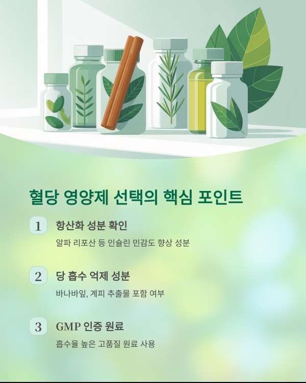 갱년기 여성에게 필요한 혈당 관리 영양제를 고르기 위해선 몇 가지 핵심 포인트가 있어요. 첫째, 인슐린 민감도를 높여주는 ‘알파 리포산’ 같은 항산화 성분이 포함되었는지 확인해야 해요. 둘째, 당 흡수를 줄이는 데 도움이 되는 ‘바나바잎 추출물’이나 ‘계피 추출물’도 주목해야 하고요.