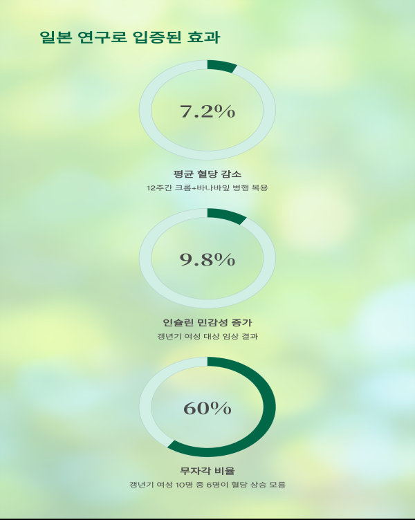 또한 서울대 식품영양학과 박경은 교수는 “갱년기 여성은 대사율이 떨어지고 체지방이 증가하기 쉬운데, 이러한 변화가 혈당에 직접적인 영향을 주기 때문에 항산화 기능이 강한 성분들을 섭취하는 것이 중요하다”고 강조했어요. 실제, 2019년 일본에서 진행된 인증 연구에서는 12주간 크롬과 바나바잎 추출물을 병행 복용한 여성들이 평균 혈당 수치 7.2% 감소, 인슐린 민감성 9.8% 증가라는 결과를 얻기도 했습니다.