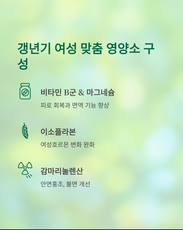 다섯째, 여성호르몬 변화도 고려한 영양소 구성인지 보셔야 해요. 이소플라본이나 감마리놀렌산 같은 성분이 들어 있으면 갱년기 대표 현상인 안면홍조나 불면에도 도움이 됩니다. 여섯째로는 제품의 후기와 별점도 중요해요. 같은 성분이라도 흡수율이나 체감 효과는 개인차가 있거든요.