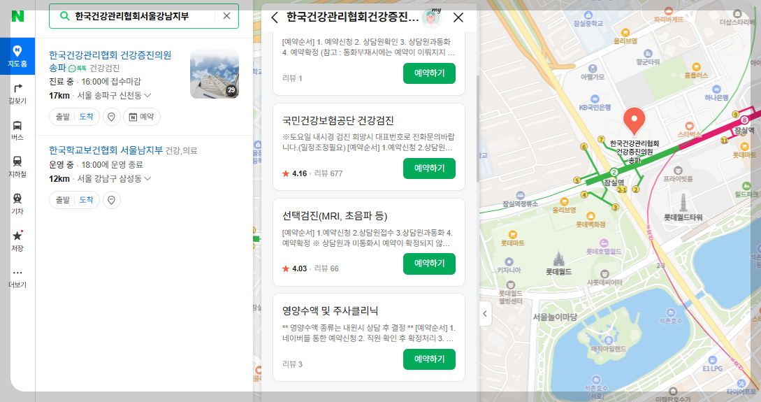1단계: 네이버에서 건강관리협회 검색 후 예약