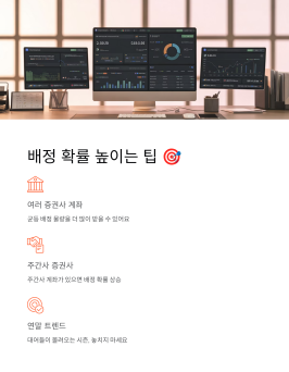 여러 증권사에 계좌를 개설해두면 균등 배정 물량을 더 많이 받을 수 있어요. 특히 주간사 증권사에 계좌가 있으면 배정 확률이 더 높아진답니다!