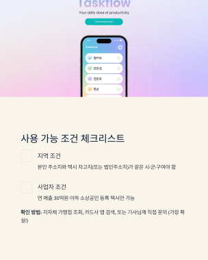 - 연 매출 30억원 이하 소상공인 등록 택시만 가능
