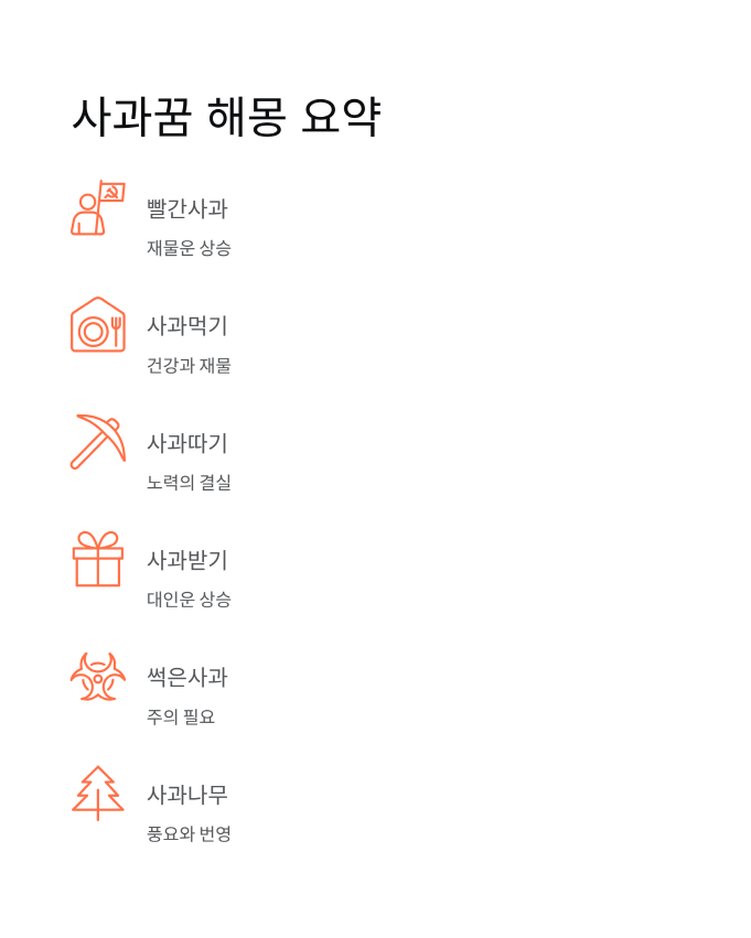 사과꿈해몽, 빨간사과꿈, 사과먹는꿈, 사과따는꿈, 사과받는꿈, 썩은사과꿈, 사과나무꿈, 사과꿈길몽