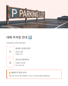 주차장이 꽉 찼을 땐 아래 대체 주차장도 이용해 보세요 👇