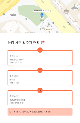 - ⏰ 운영시간: 09:00~18:00 (입차마감 17:30)