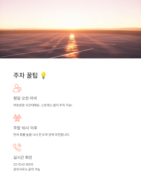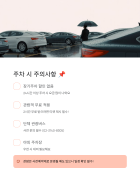 - ☔ 야외 주차장이므로 우천 시 대비 필요