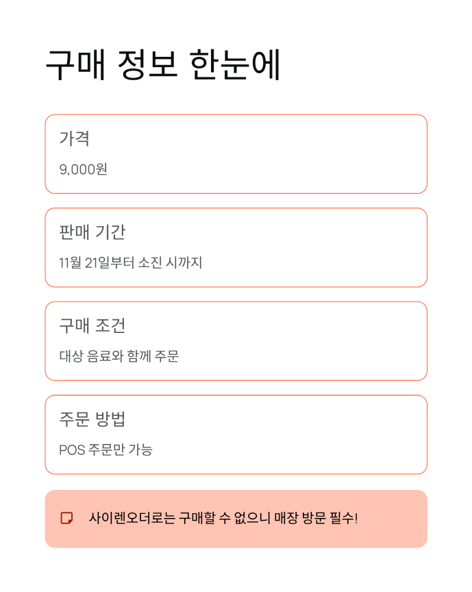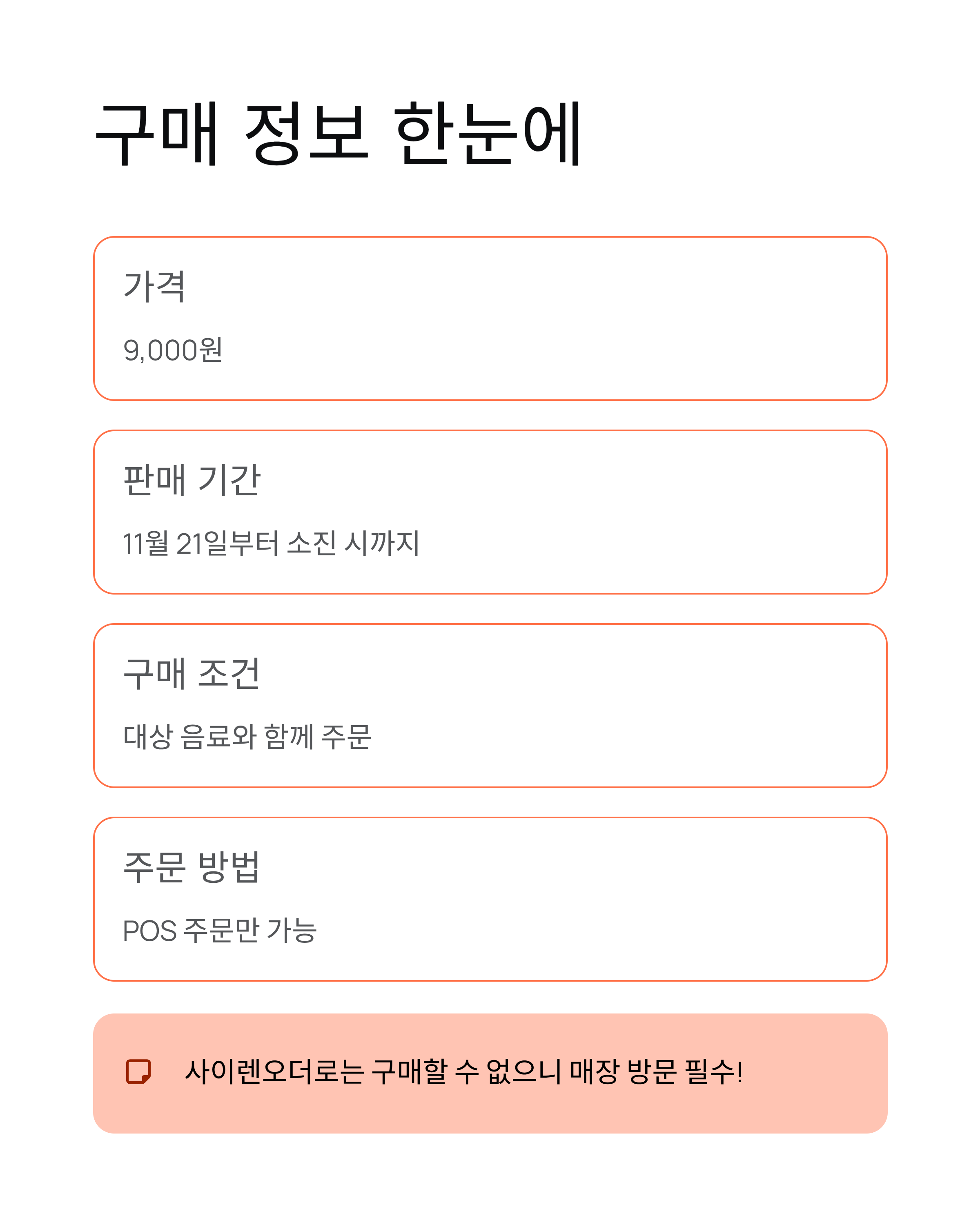 - 주문 방법: POS 주문만 가능 (사이렌오더 X)