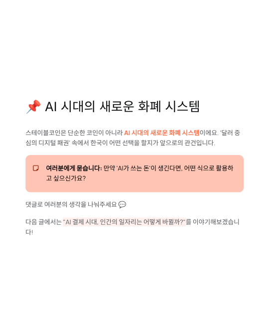 스테이블코인은 단순한 코인이 아니라 AI 시대의 새로운 화폐 시스템이에요.