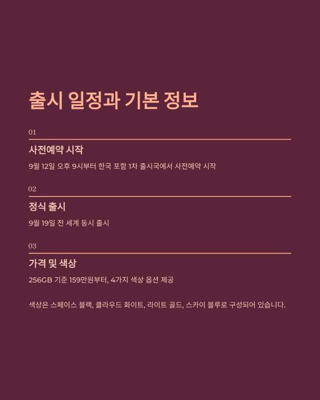 - 출시일: 2025년 9월 19일 (한국 1차 출시국)