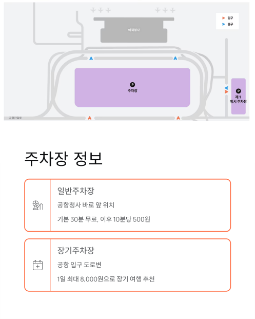 | 일반주차장 | 공항청사 앞 | 무료 | 가장 가까움 |