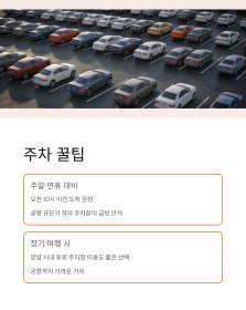 | 장기주차장 | 공항 입구 도로변 | 무료 | 장기 여행 시 추천 |