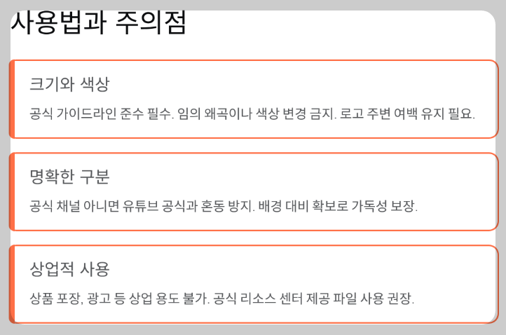 공식 채널이나 협업 콘텐츠가 아니라면, 로고가 유튜브 공식과 혼동되지 않도록 반드시 명확히 구분해 써야 합니다. 특히 상업적 용도(상품 포장, 광고 등)로 쓰는 것은 허용되지 않아요.
