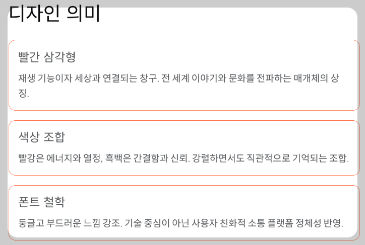 빨간 삼각형 버튼은 단순히 재생 기능을 뜻하지만, 더 깊게 보면 ‘세상과 연결되는 창구’라는 의미를 담고 있습니다. 유튜브는 단순한 영상 플랫폼이 아니라 전 세계의 이야기와 문화를 전파하는 매개체로서 상징적인 색을 갖습니다.