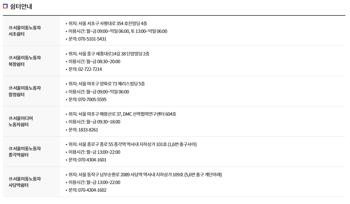 이동노동자쉼터 이용안내 현황 중요성에 대한 모든 것