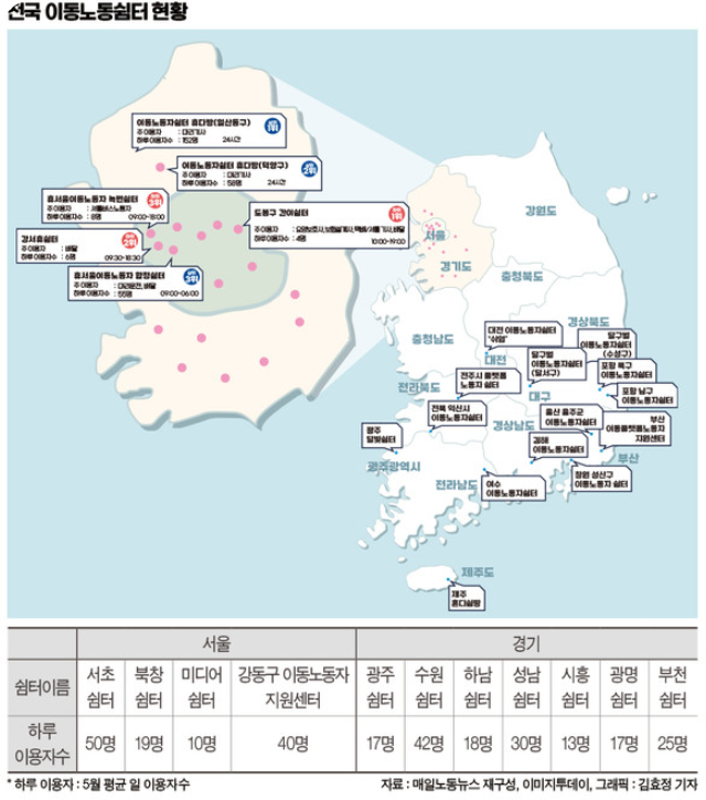 대한민국 이동노동자쉼터의 현황