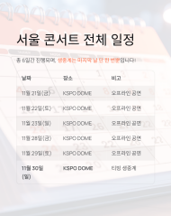 | 11월 29일(토) | KSPO DOME | 오프라인 공연 |