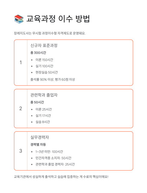 장례지도사는 만 18세 이상이면 누구나 도전할 수 있고, 시험 없이 교육과정 이수만으로 자격증을 취득해요. 신규자는 300시간, 전공자는 50시간, 경력자는 경력에 따라 25~100시간을 이수하면 됩니다.