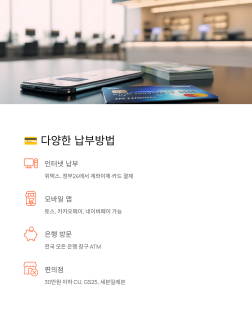 - ✅ 납부: 인터넷, 앱, 은행, 편의점, 자동이체
