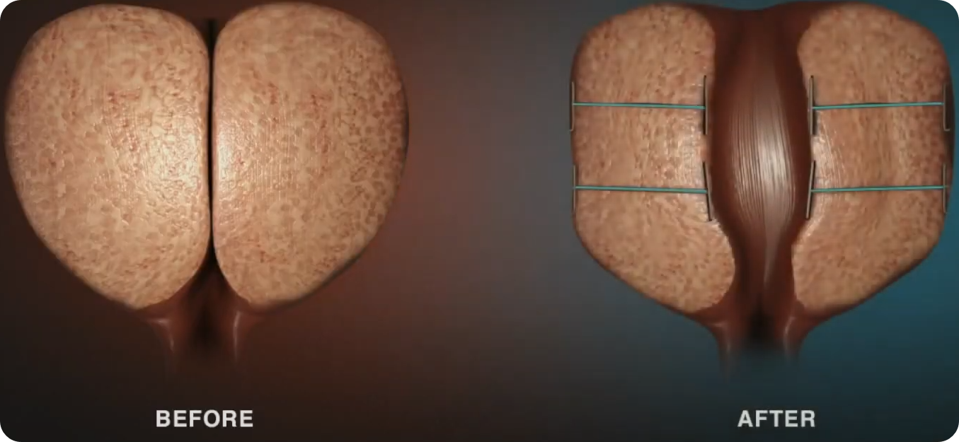 방법: 전립선을 고정하는 클립 삽입으로 요도 압박 완화.