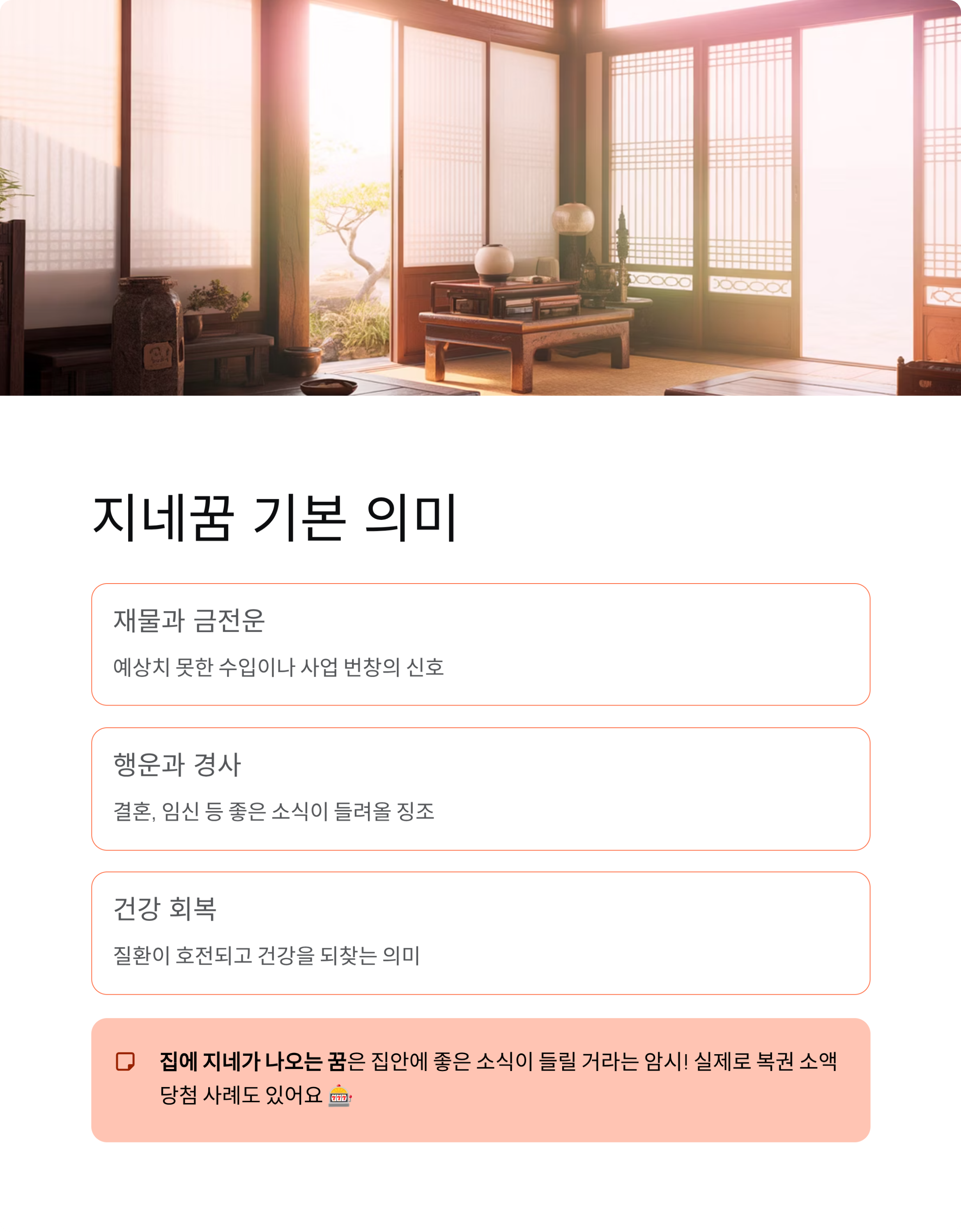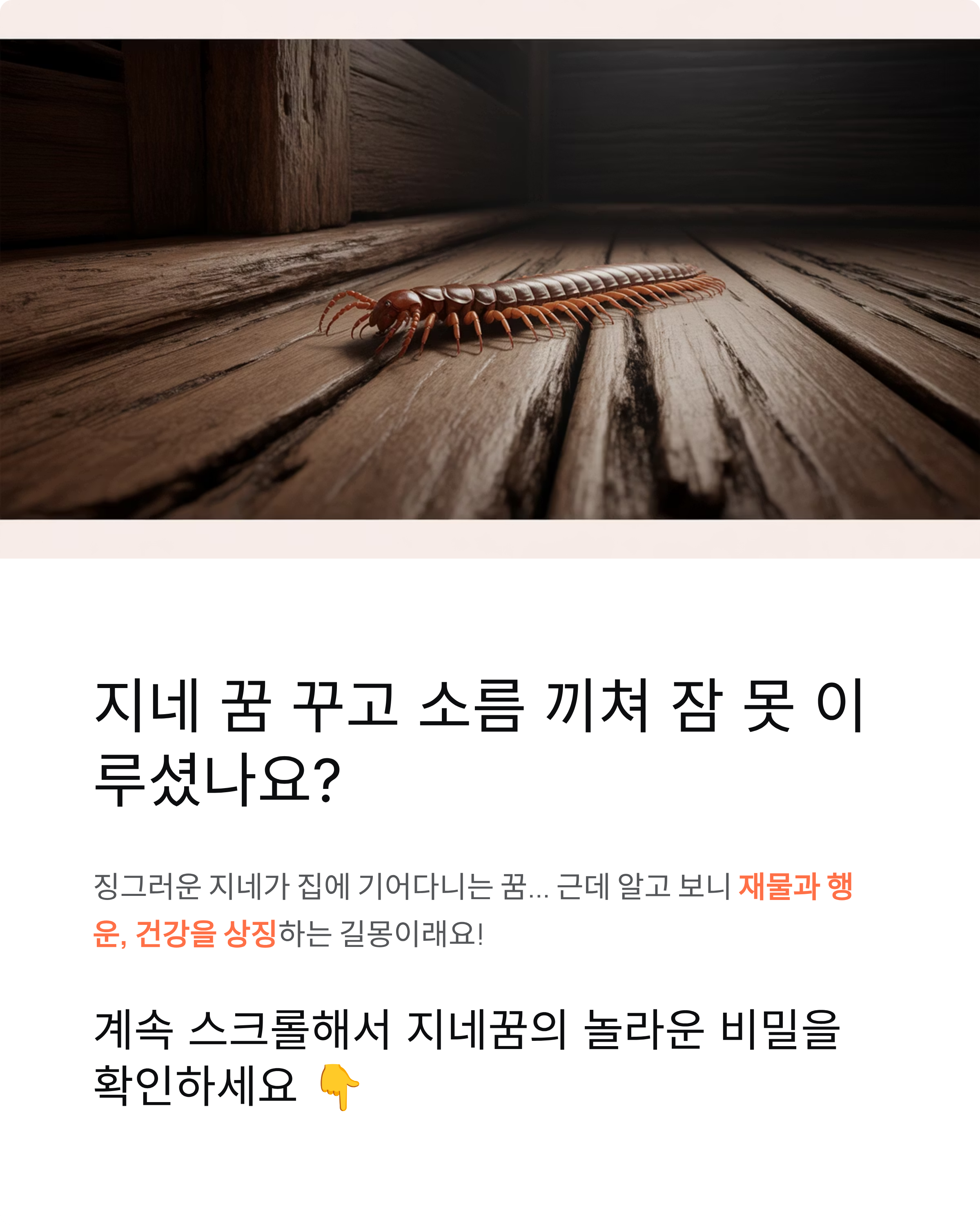 👍 이 글이 도움되셨다면 공감 버튼 꾹! 여러분의 신기한 지네꿈 경험담도 기댈게요!