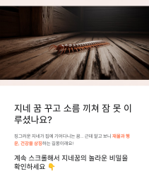 최근에 지네꿈 꾸신 분들, 어떤 꿈이었나요? 혹시 꿈 꾸고 나서 실제로 좋은 일이 있었나요? 댓글로 공유해주세요!