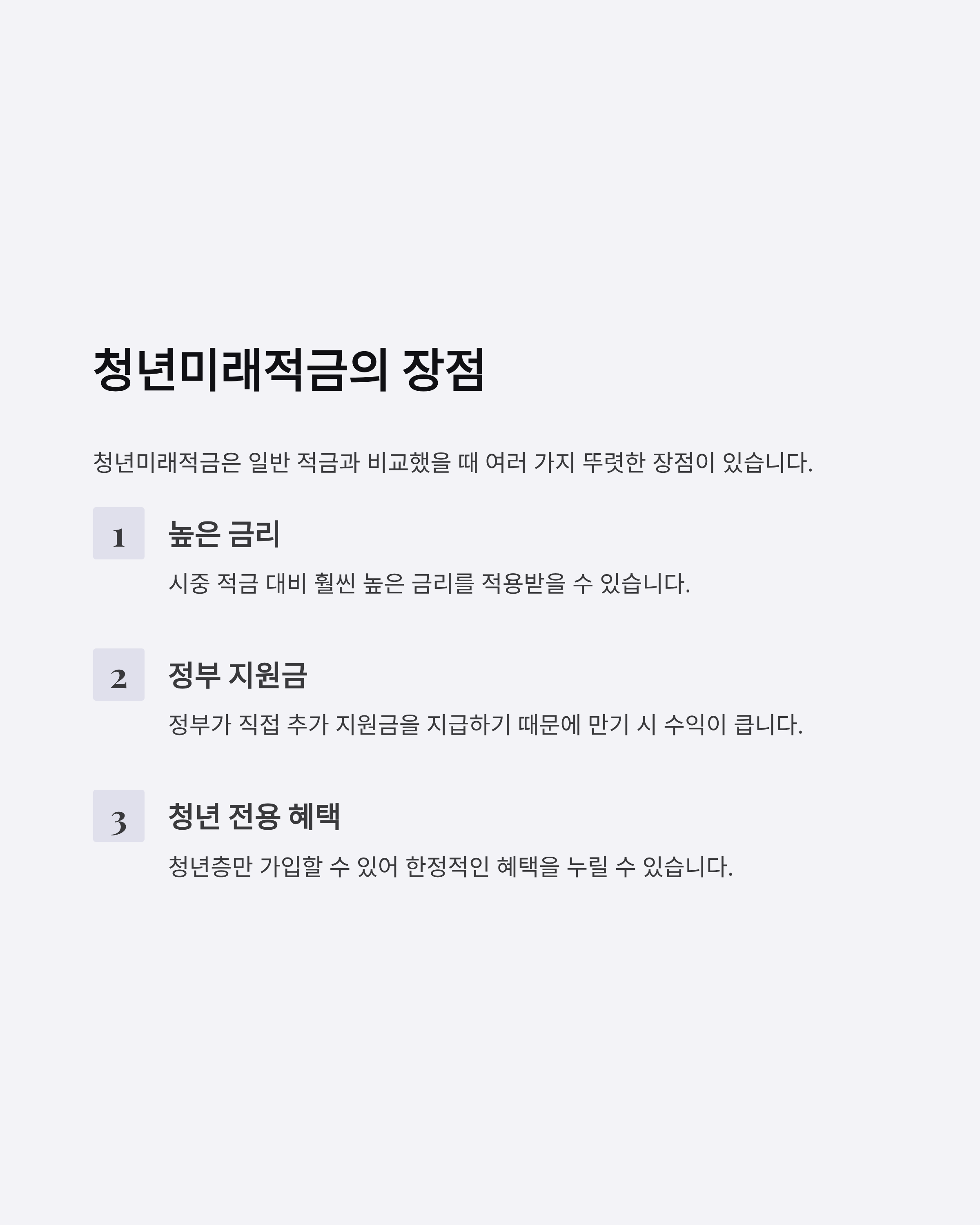 셋째, 청년층만 가입할 수 있어 한정적인 혜택을 누릴 수 있습니다.