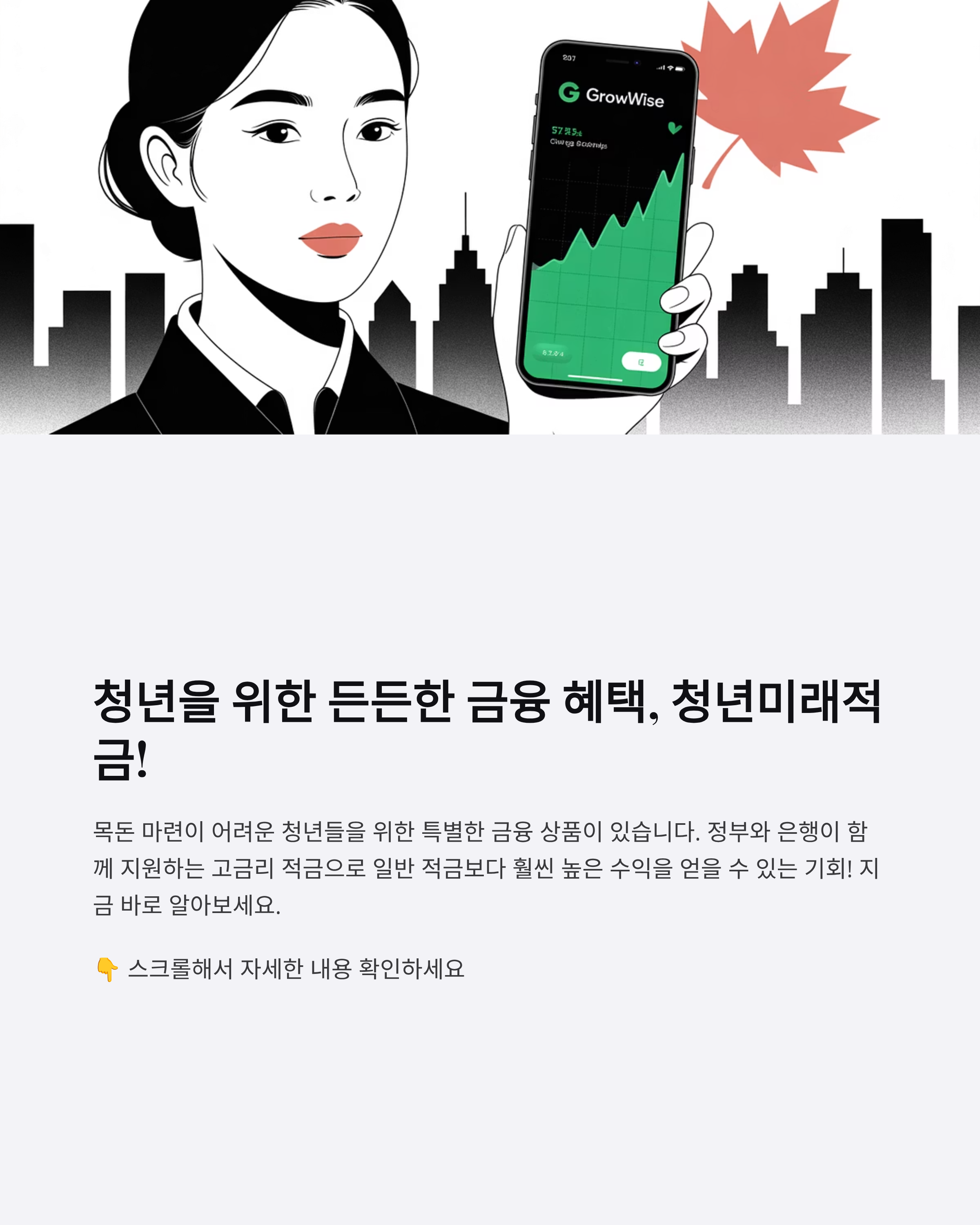 청년미래적금은 청년들의 목돈 마련을 지원하기 위해 정부와 은행이 함께 운영하는 정책 금융 상품입니다. 단순히 돈을 저축하는 차원을 넘어 높은 금리 혜택과 정부 지원금을 받을 수 있다는 점에서 인기가 높습니다. 이번 글에서는 가입 조건, 지원 내용, 절차까지 한눈에 정리해 드리겠습니다.