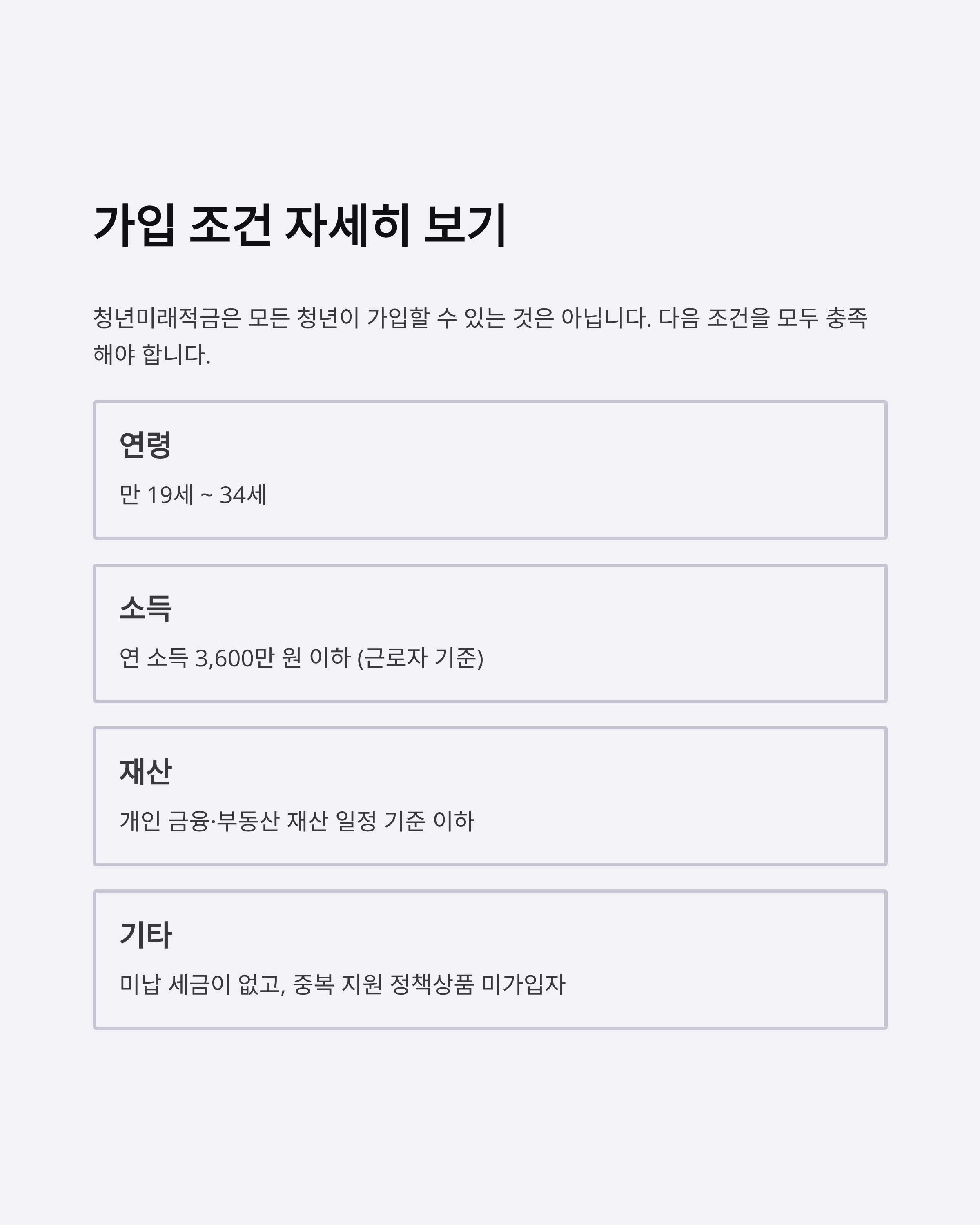 가입 조건은 소득, 연령, 재직 여부 등이 종합적으로 고려됩니다.