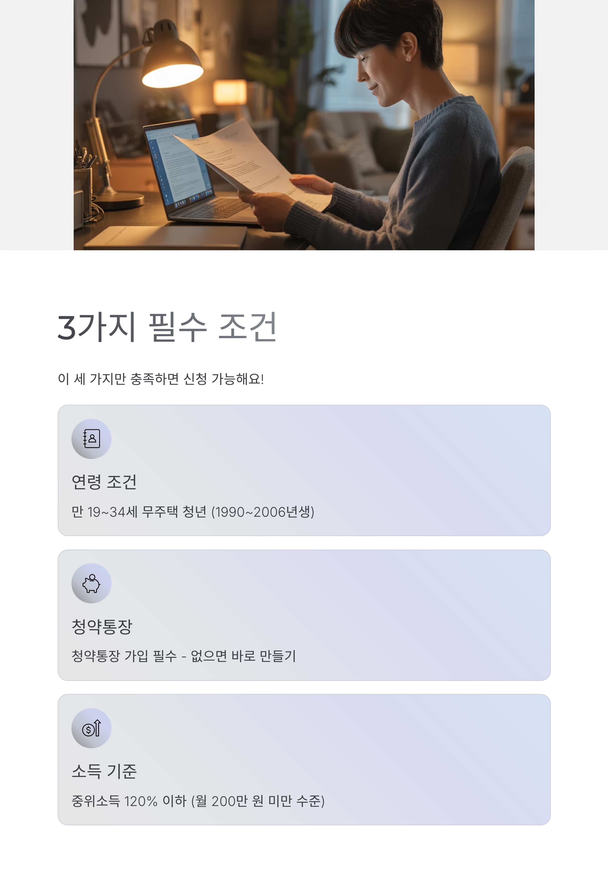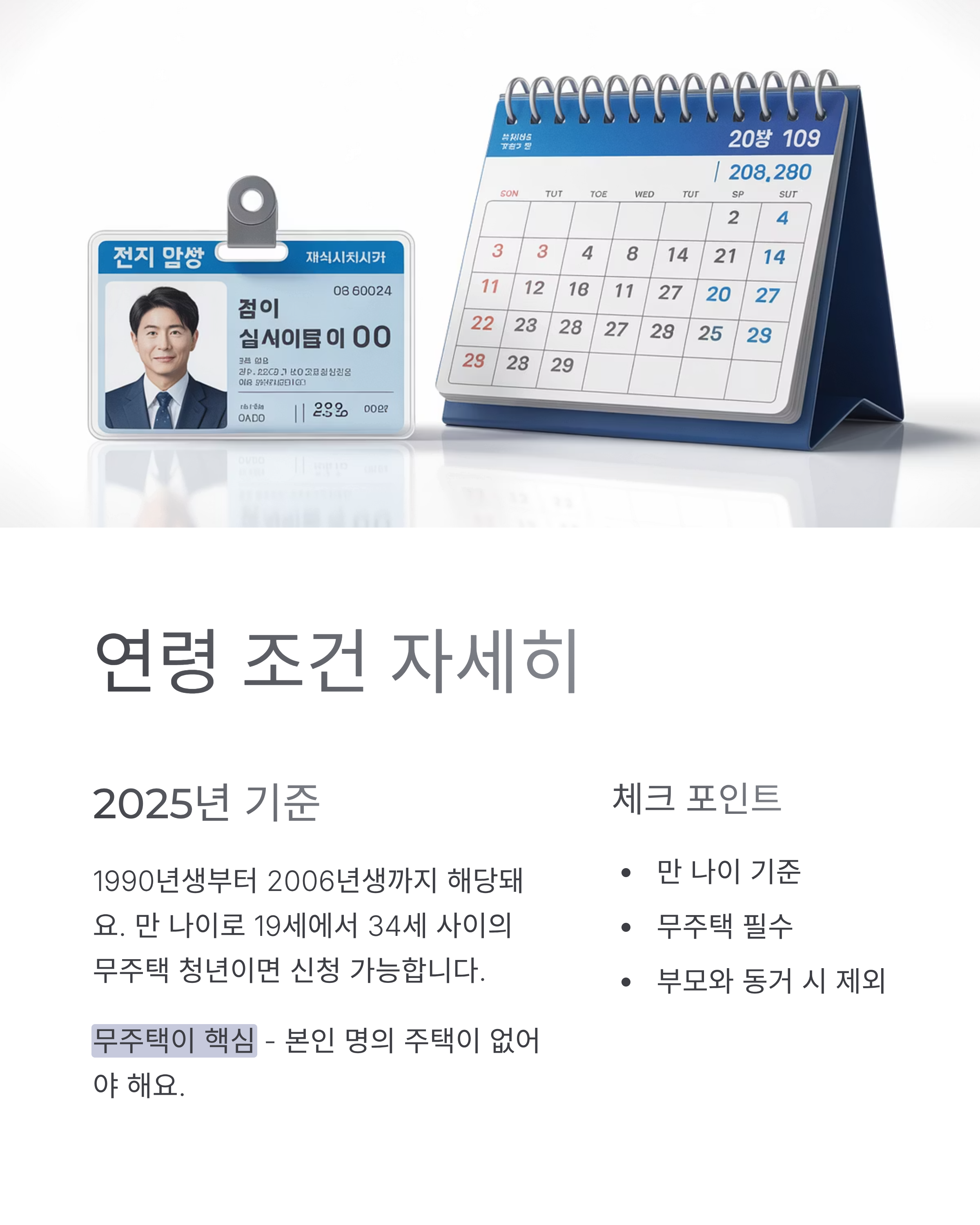 1. **연령**: 만 19~34세 무주택 청년 (2025년 기준 1990~2006년생).