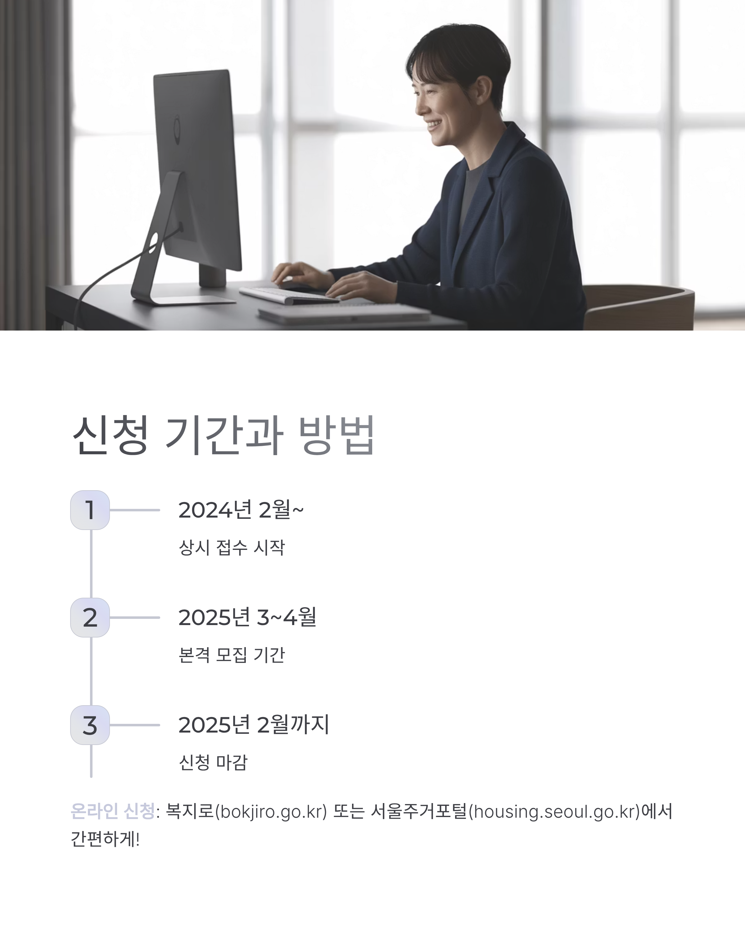 신청 기간은 2024년 2월부터 2025년 2월까지 상시 접수지만, 2025년 상반기(3~4월) 모집이 본격화될 거야. 지원 금액은 월 최대 20만 원, 총 240만 원까지 – 월세가 30만 원 이상이면 100% 지원받아. 나 친구가 서울에서 신청했는데, 12개월 동안 240만 원 풀 지원받아 여행 갔대. 2025년 예산 확대 소식이라 더 유리할 듯!