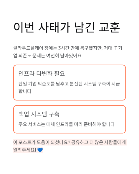 이번 클라우드플레어 장애 때문에 불편 겪으셨나요? 공감 버튼 꾹 눌러주시고, 댓글로 어떤 서비스가 안 됐는지 경험을 공유해주세요! 💙