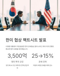 최근 이재명 대통령이 직접 발표한 한미 협상 팩트시트가 큰 화제를 모았어요. APEC 회의 이후 진행된 관세협상의 결과를 정리한 공동설명자료였죠!