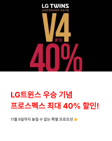 프로스펙스 LG트윈스 한국시리즈 우승 기념 프로모션, 최대 40% 할인!