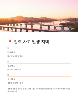발생 지역: 한남대교, 동호대교, 성산대교 등
