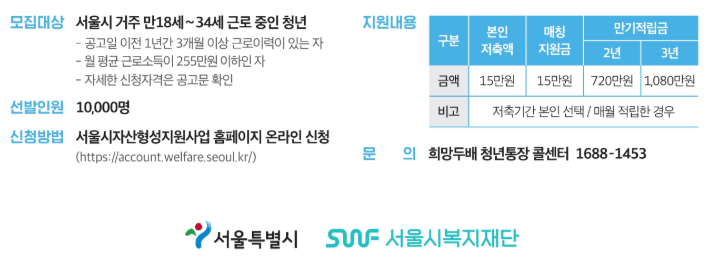 - 지원 대상: 일하는 저소득 서울시 거주 청년