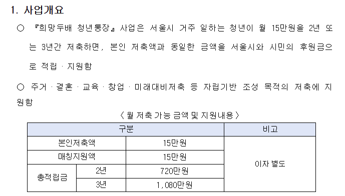 1. 희망두배 청년통장이란? 청년의 자립을 위한 서울시의 파격 지원