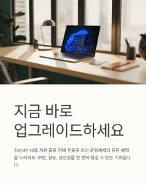 윈도우11이 무료로 업데이트 가능한데도 아직 윈도우10을 사용하고 계신가요? 2025년 10월 윈도우10 지원 종료 전에 미리 업그레이드하면 보안과 성능을 동시에 챙길 수 있습니다. 지금 바로 5분 투자로 최신 운영체제의 모든 혜택을 누려보세요