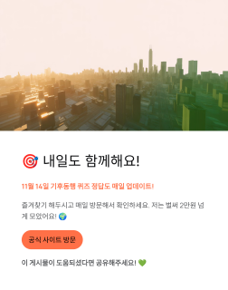 11월 14일 기후동행 퀴즈 정답도 매일 업데이트됩니다.