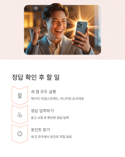 저도 세 앱 모두 깔아서 매일 퀴즈 풀고 있어요. 같은 정답으로 세 곳에서 모두 포인트를 받을 수 있어서 정말 효율적이에요!