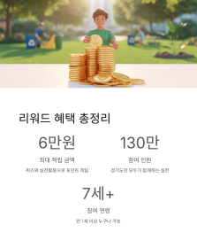 만 7세 이상 경기도민이면 나이 제한 없이 모두 참여할 수 있어요. 가족 모두가 함께 참여해서 환경도 지키고 리워드도 받아보세요!