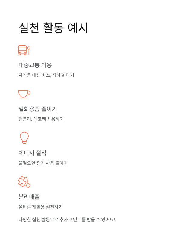 기후동행은 단순히 퀴즈만 푸는 게 아니에요. 다양한 실천 활동을 통해 리워드를 받을 수 있답니다!