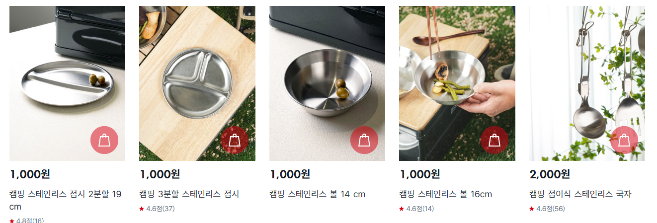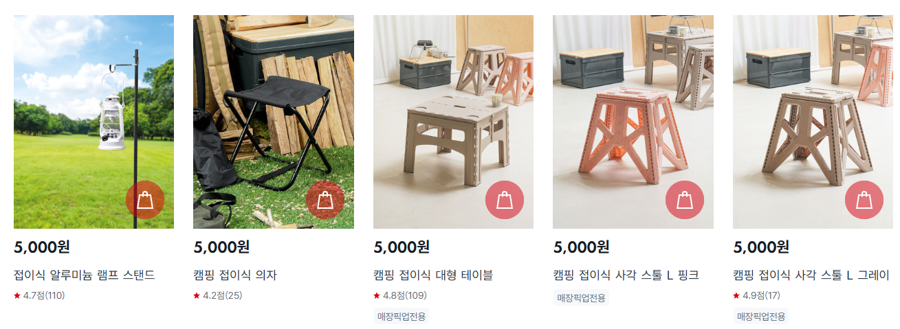취사용품부터 감성 소품까지 100여 종의 상품을 준비해 캠퍼들의 다양한 요구를 충족합니다. 특히, 저렴한 가격에 실용성과 디자인을 모두 갖춘 제품들이 큰 호응을 얻고 있습니다.