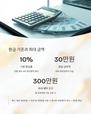 즉, 월 300만원 이상 소비 시 한도인 30만원까지 환급받을 수 있습니다.