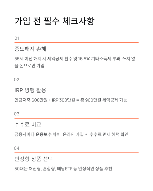 - ✅ 55세까지 안 쓸 돈으로만 가입할 것