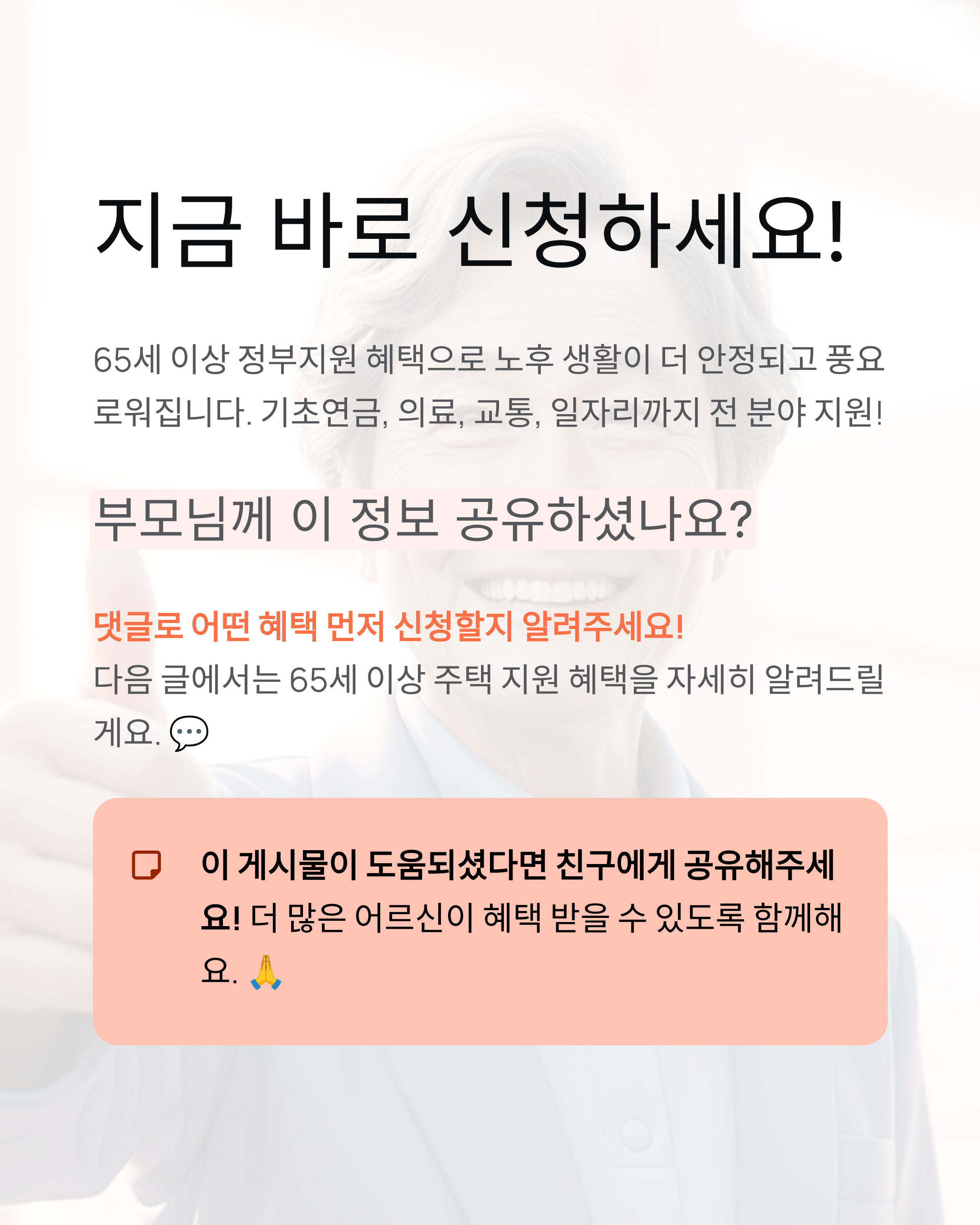 2025년 65세 이상 정부지원 혜택 안내로 기초연금 인상, 의료·교통 무료, 일자리 지원까지 알아봐요. 노후 생활비 걱정 많으시죠? 이 혜택 모르면 매달 수십만 원 손해 볼 텐데!